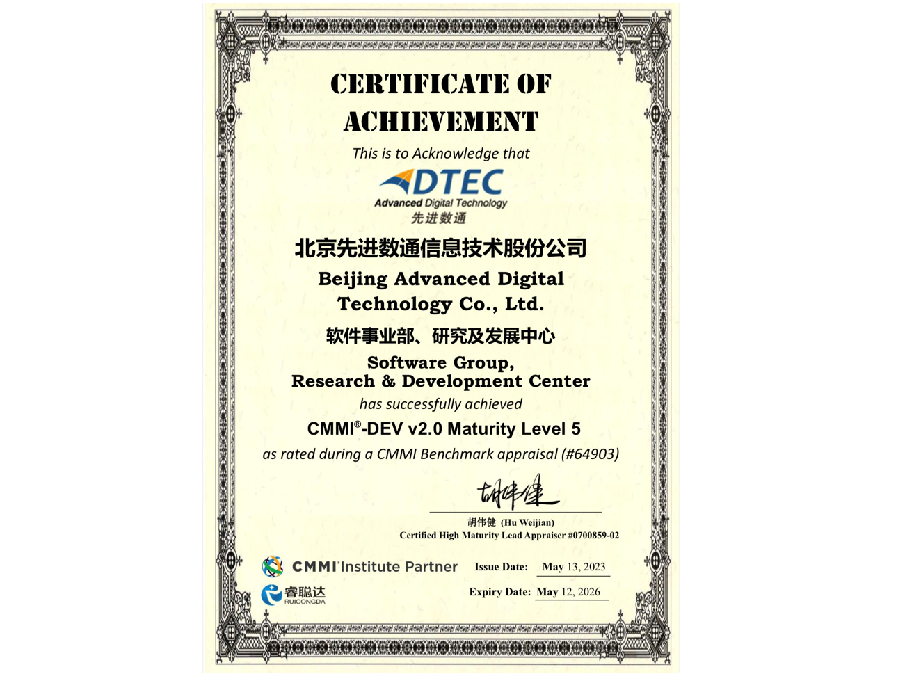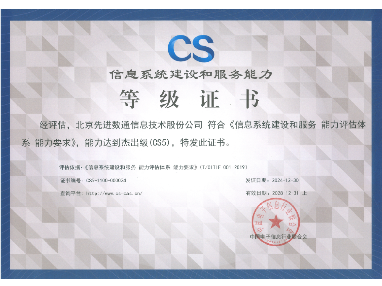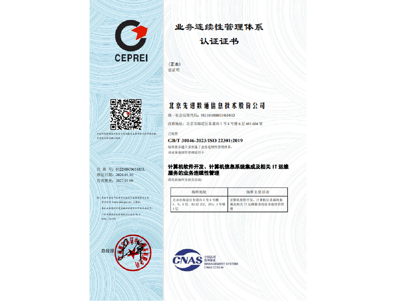 sbobet利记(中国)先后取得CMMIL5、软件能力成熟度五级(SPCA 5)、信息系统建设和服务能力评估体系(CS)5级、ITSS成熟度一级、信息系统安全集成服务资质二级、信息系统安全运维服务资质二级、国产化信息系统集成和服务能力评估四级(LS4)、北京市企业技术中心等资质认证,并取得ISO9001、ISO20000、ISO27001、ISO14001、ISO45001、ISO22301、ISO37001、ISO28001、GBT29490等标准体系认证,具备行业领先的技术开发、工程实施及服务保障能力。